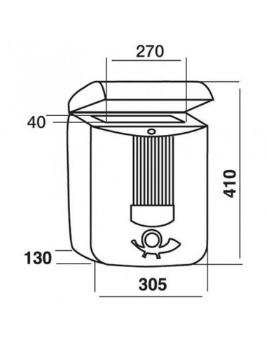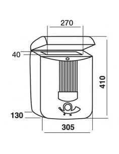 Tamaño de 305 x 410 x 130 mm.