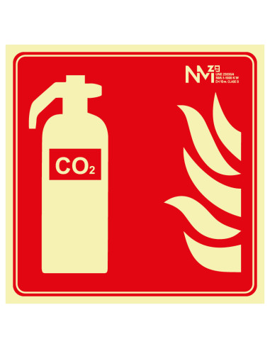 Señal Luminiscente PVC o Aluminio Cuadrada. Extintor CO2