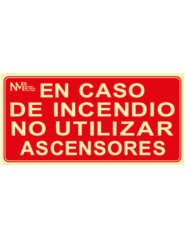 Señal Luminiscente PVC o Aluminio. En Caso de Incendio no Utilizar Ascensores