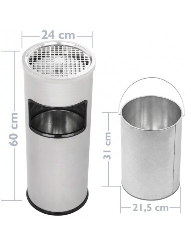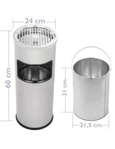 Papelera de Pie Circular con Cenicero. Gris