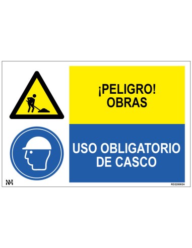 Señal Peligro Obras. Uso Obligatorio de Casco