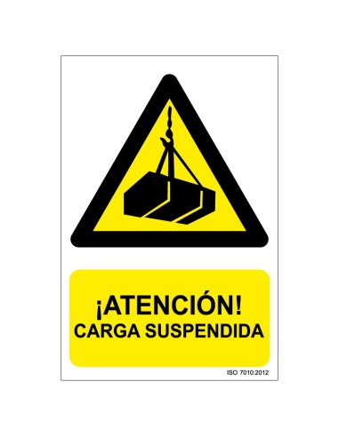 Señal Adhesivo, PVC o Aluminio. Atención Carga Suspendida