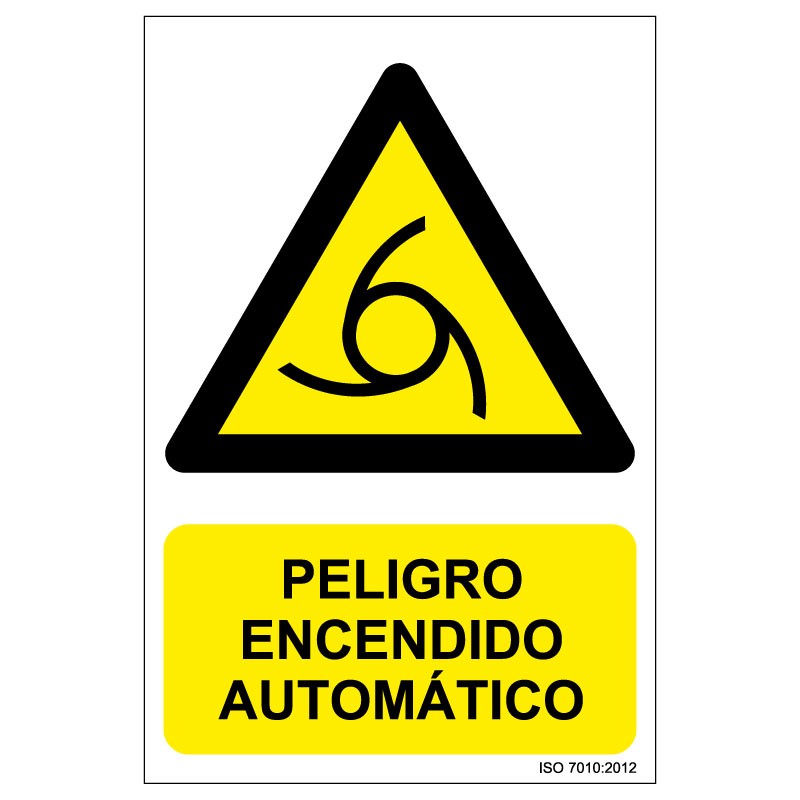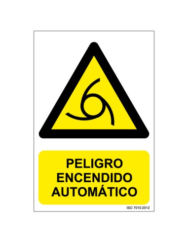 Señal Adhesivo, PVC o Aluminio. Peligro Encendido Automático