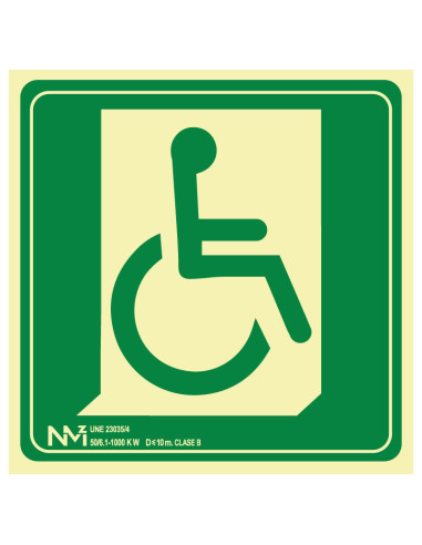 Señal Luminiscente PVC o Aluminio. Silla de Ruedas Salida Derecha