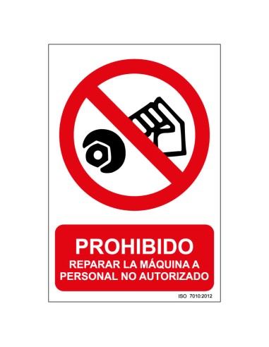 Señal Adhesivo, PVC o Aluminio. Prohibido Reparar la Máquina a Personal No Autorizado