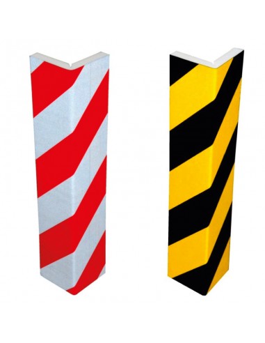Esquinera en Negra y Amarillo o Rojo y Blanco de espuma de polietileno con film reflectante y autoadhesivo para una fácil instalación.